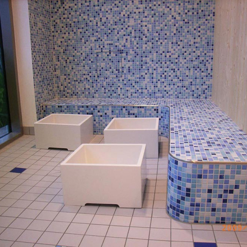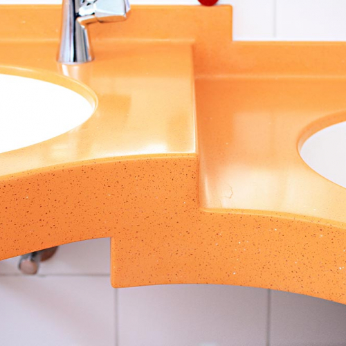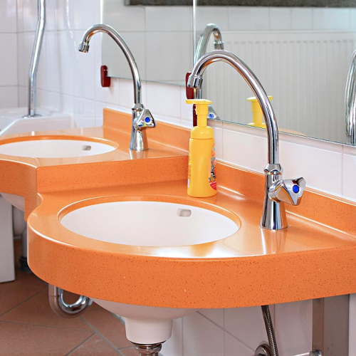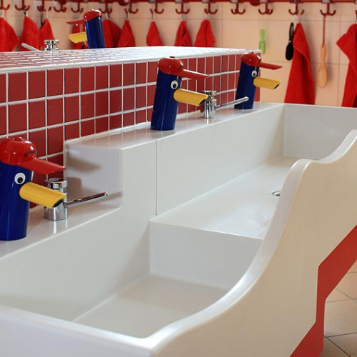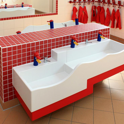 - als freistehende Waschinsel oder farbiger Reihenwaschtisch